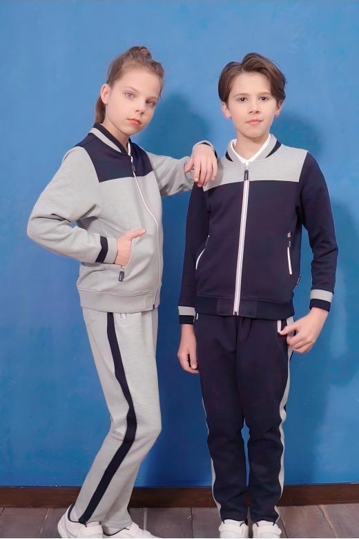 The British Academy Knit Sportswear merges sporty functionality with refined preppy aesthetics, offering children a versatile outfit for both active and casual occasions. Part of the British Light Outdoor Series, this set promotes outdoor engagement, balance, and resilience. The top features a contrasting ribbed stand collar, colorful zipper, and symmetrical pockets, while the matching pants provide a drawstring elastic waistband, multiple pockets, and contrasting side stripes. Crafted from air-layered cotton-polyester fleece, the set is soft, breathable, slightly stretchy, and easy to maintain, ensuring both comfort and durability throughout all-day wear.