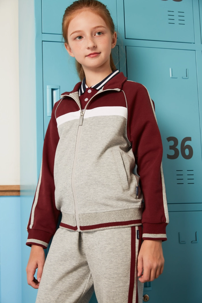 Constructed from air-layer cotton fleece, both the top and pants offer a lightweight yet warm feel, allowing children to remain comfortable throughout varied activities. The slightly stretchy fabric provides flexibility for running, climbing, or any dynamic motion, while maintaining its shape after repeated wear. The cotton-polyester blend ensures breathability and moisture management, keeping children dry and comfortable during prolonged activity. Additionally, the fabric is durable and easy to care for, withstanding multiple washes without compromising softness or color vibrancy. This thoughtful combination of comfort, performance, and practicality makes the sport set suitable for year-round use in diverse outdoor conditions.