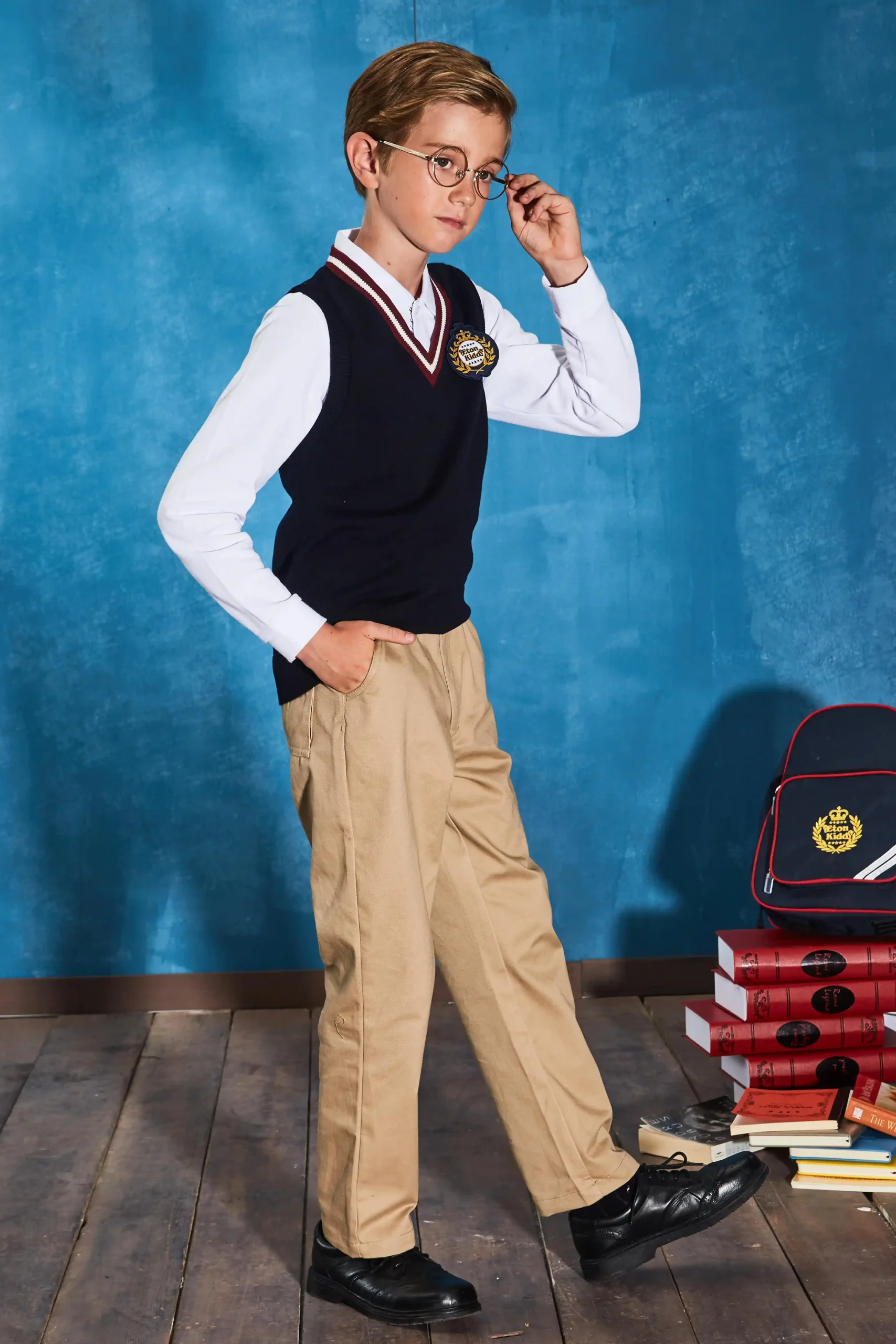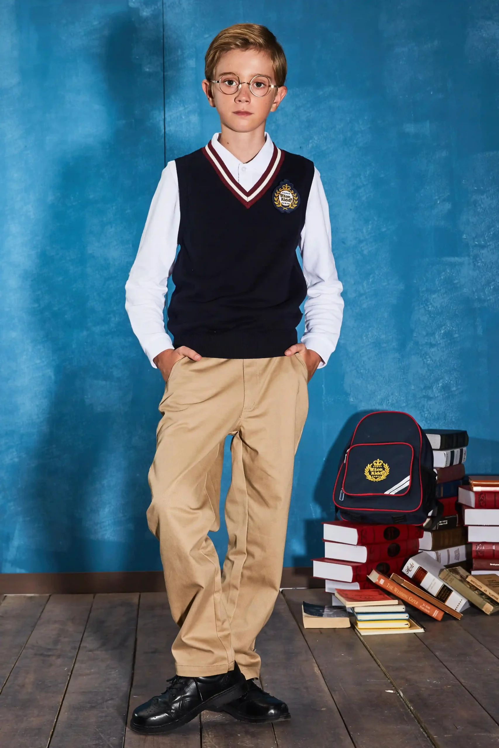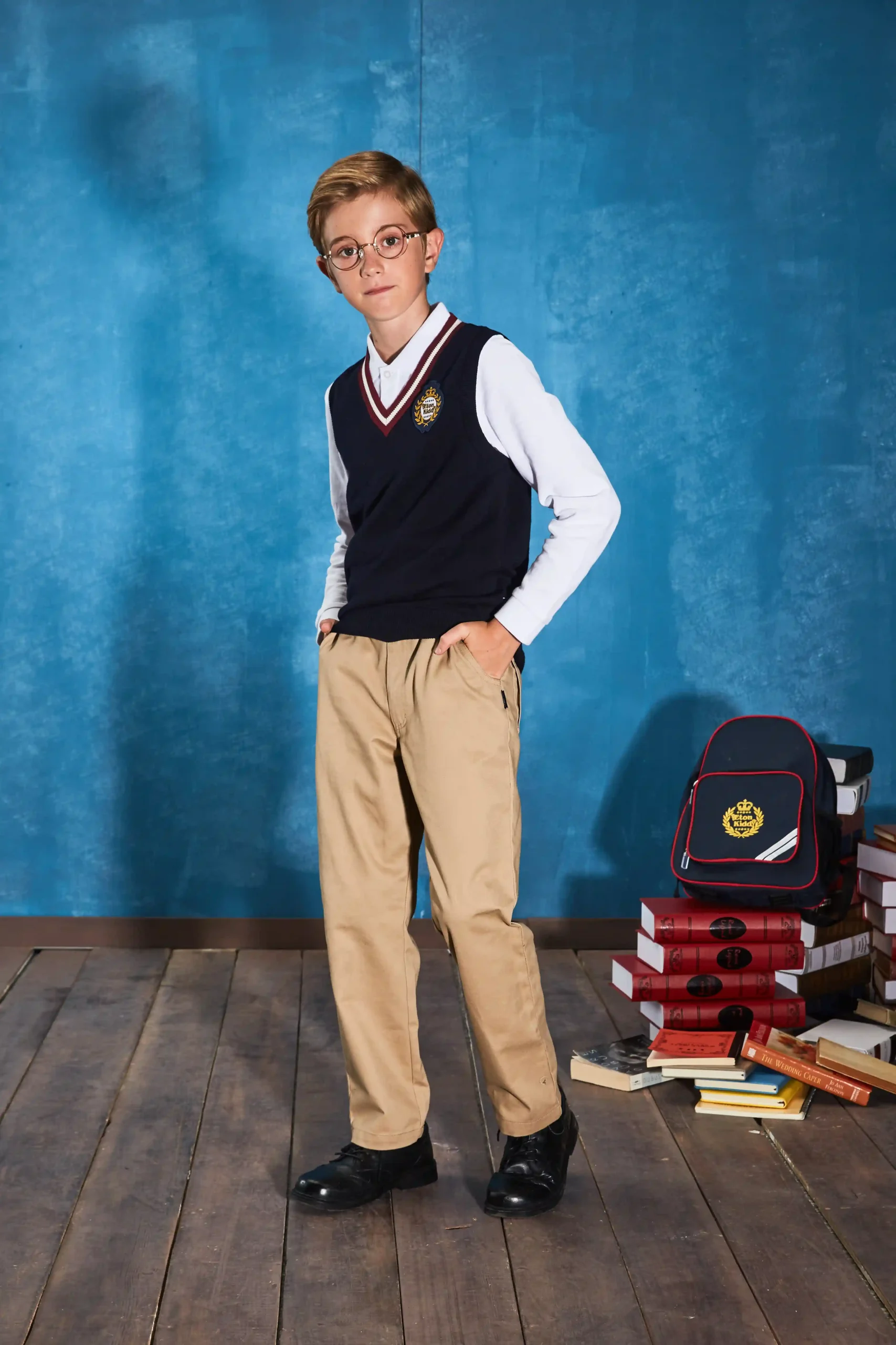 Crafted from premium soft cotton yarn, this sweater vest emphasizes comfort, durability, and ease of care. The material is gentle against the skin, resistant to pilling, and maintains its shape even after repeated washing. Ribbed cuffs and hem are reinforced to preserve structure and provide additional warmth and wind resistance. Every seam and detail is carefully executed, ensuring a polished finish and long-lasting wear. The combination of soft textile and precise craftsmanship results in a garment that balances style, comfort, and practicality, reflecting the design philosophy of the Campus Silhouette Collection.