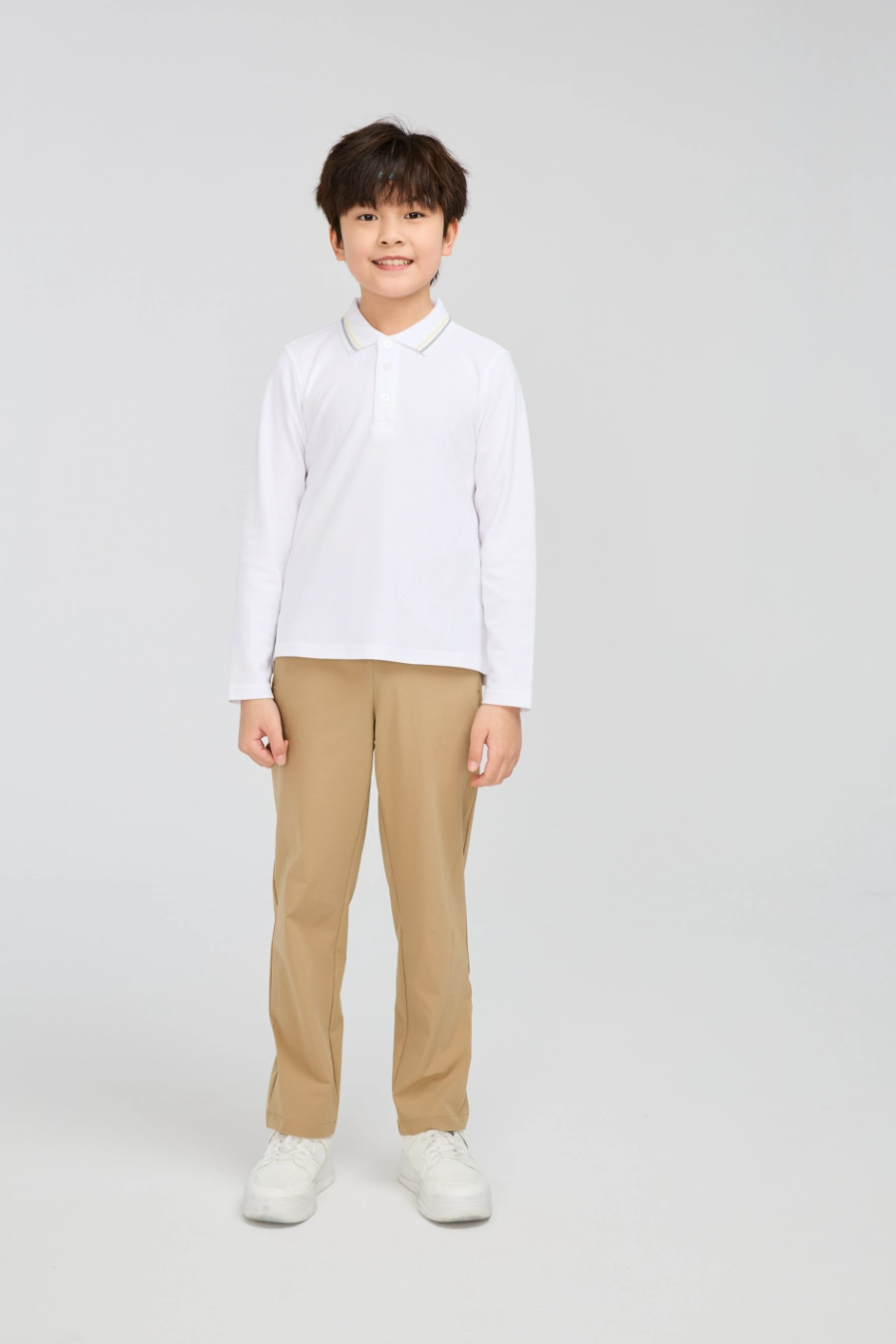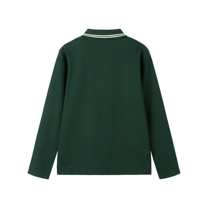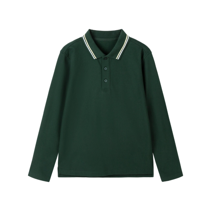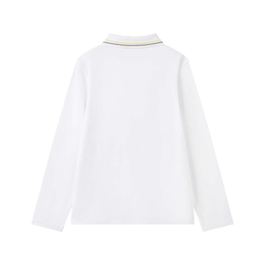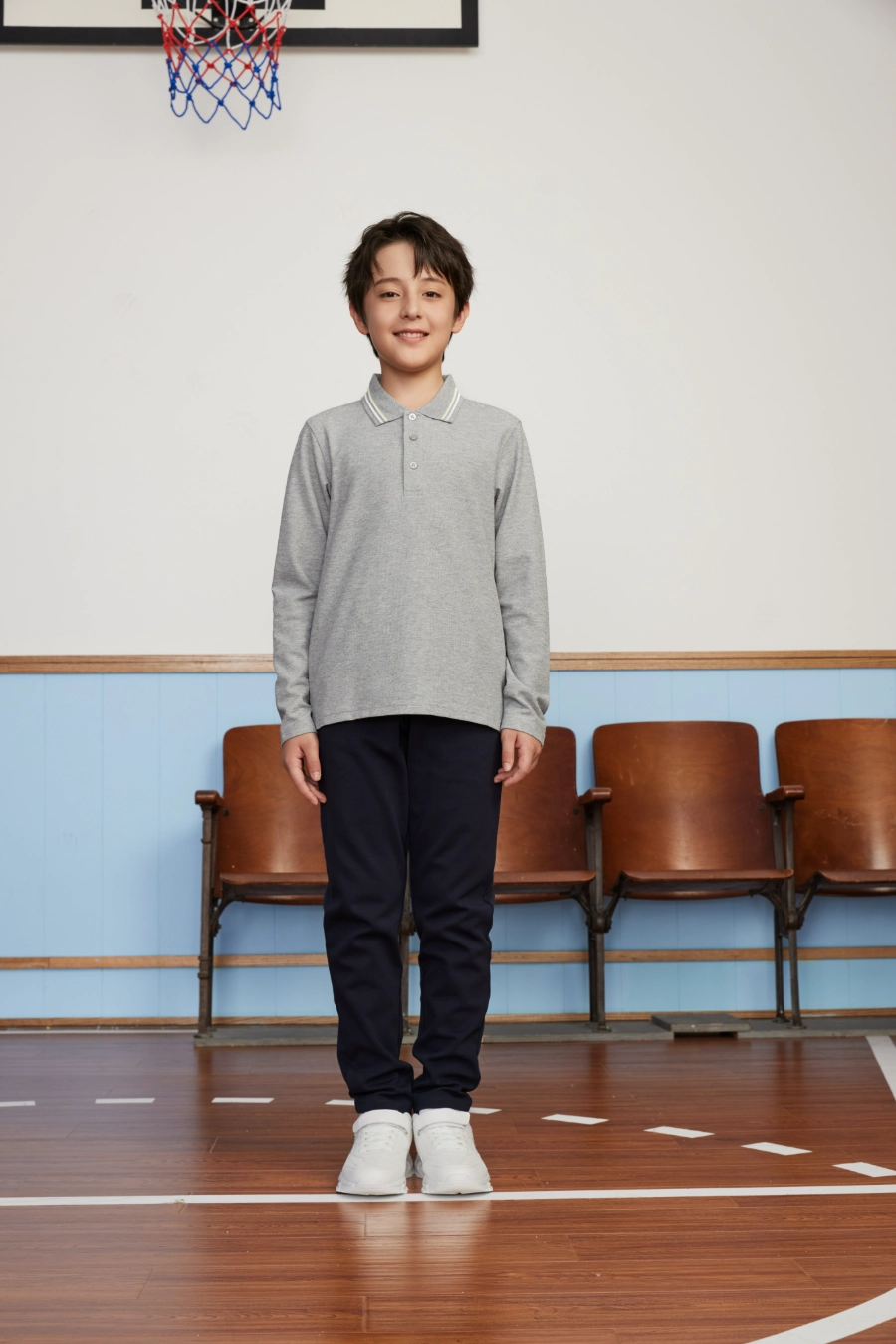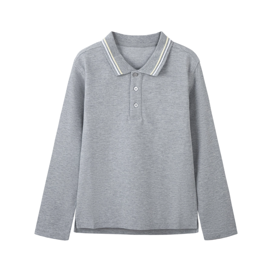 This versatile piece transcends the boundaries between uniform and casual wear. Ideal for school environments, it projects discipline and neatness while allowing comfort for a full day of study or activity. Outside the classroom, it transitions seamlessly into weekend gatherings, travel, or light sports activities, where its breathable texture and structured silhouette maintain an elegant, energetic appearance. The design pairs easily with chinos, pleated skirts, or blazers, adapting to diverse styles—from formal assemblies to relaxed campus afternoons. In every setting, the Preppy Style Pique Knit Ribbed Collar Long-Sleeved T-shirt embodies the essence of the new campus era: intelligent, confident, and refined.