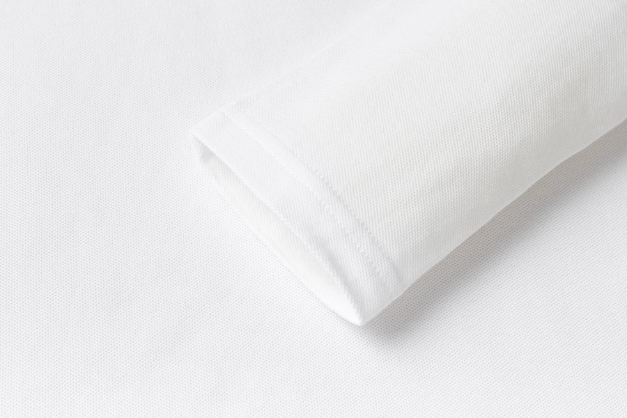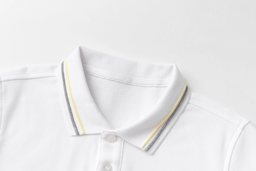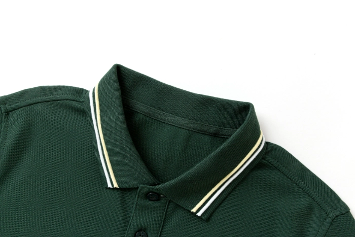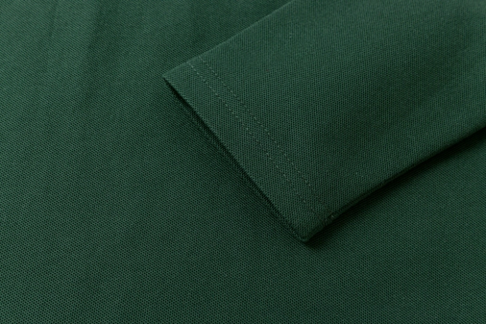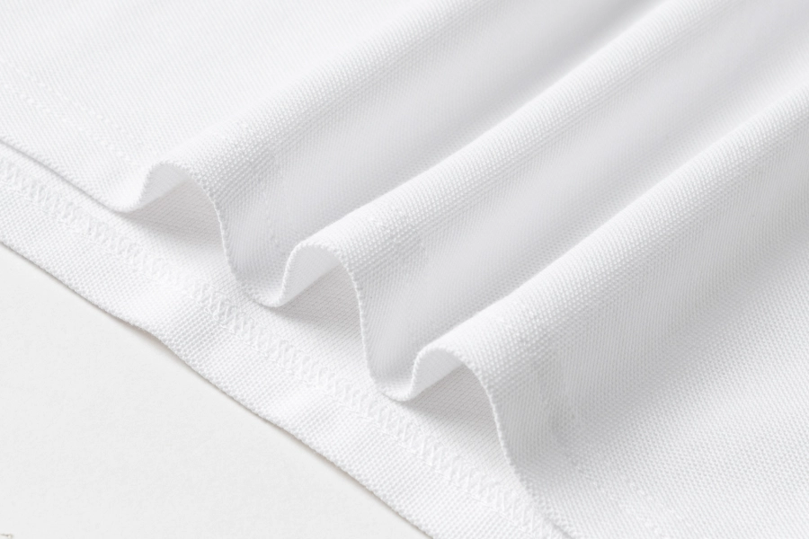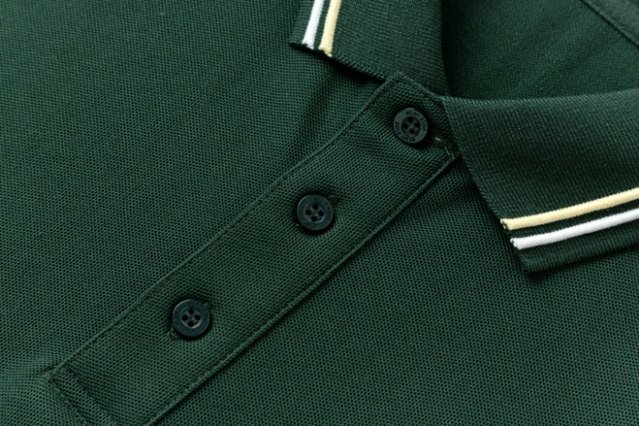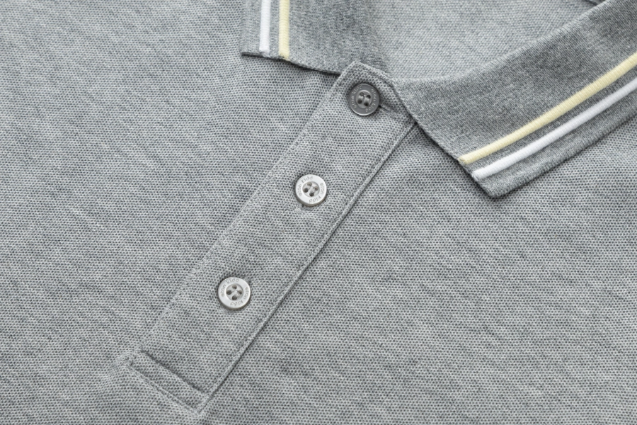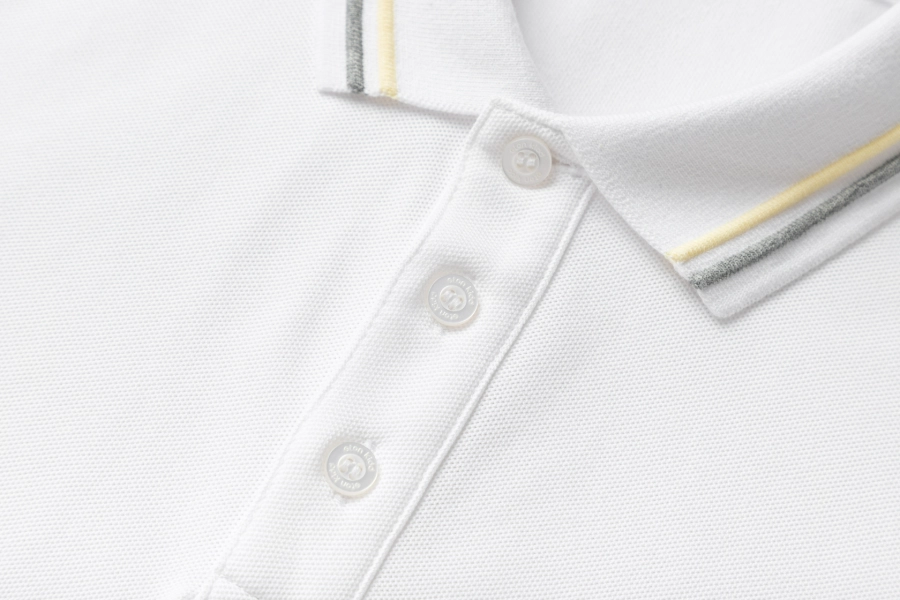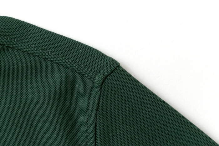 Made from a high-quality blend of 65% cotton and 35% polyester, the fabric strikes an ideal balance between comfort, durability, and breathability. The pique knit structure enhances air circulation, keeping the body cool and fresh throughout the day, while the slight elasticity provides freedom of movement without compromising the shirt’s structured silhouette. The cotton fibers give it a natural, skin-friendly touch, while the polyester content helps maintain shape and reduce wrinkling. Moderate in weight and thickness, this material is suitable for summer and transitional seasons, offering versatility for both indoor and outdoor environments. Through precision knitting and careful tension control, the fabric achieves a smooth, stable texture that retains its crispness even after multiple washes, ensuring long-lasting wearability.